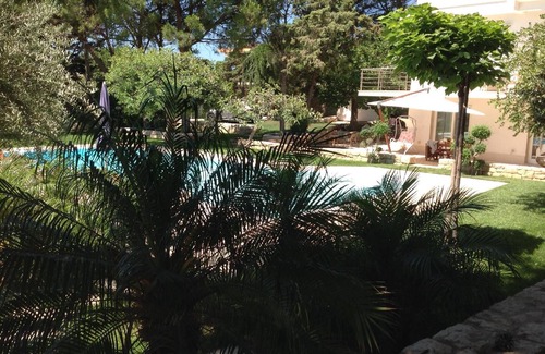 The house is surrounded by a 2000 m² garden with Mediterranean vegetation and an English lawn, as well as olive trees. There is a beautiful infinity swimming pool measuring 6 x 12 metres with salt heated water, which can be used in the evening. You can also sunbath here in the large solarium. There are deckchairs and parasols, a shower and barbecue. The swimming pool is open all year round.