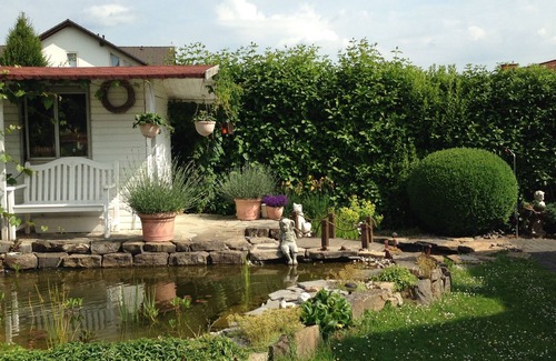 With the holiday apartment "Auszeit", you can use a cozy ground floor apartment / hillside location in Sundern, Sauerland, in a quiet, well-kept, yet central location. It is a tasteful holiday home with a small garden and an ornamental pond with fish. A sun terrace with a parasol and a cozy Sitting area invite you to relax. A designated parking space at the house is available. Further parking spaces are available along the street (dead end). The apartment offers a fully equipped kitchen, a storage room, a living room / bedroom with a panoramic window into the garden, a bedroom with a double bed and a bathroom. For entertainment, 1 TV (cable connection) and 1 Musicman (with approx. 4000 pieces of music) are available. A free internet connection via WLAN is possible. You can spend your vacation days here in a variety of ways. Sports opportunities, as well as numerous sights and stalactite caves can be viewed in the surrounding area. You can end the day with a delicious dinner on the terrace near the ornamental pond.