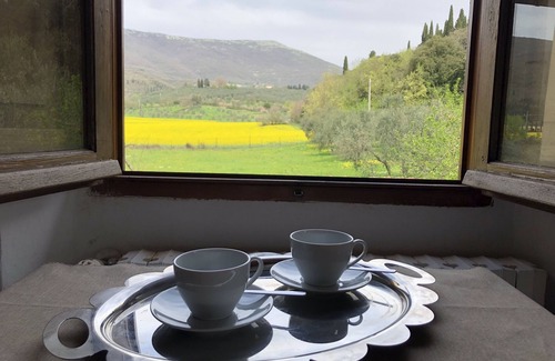 Quiet area of countryside but not isolated in front of the bike path and starting point for picturesque walks in the Tuscan countryside.