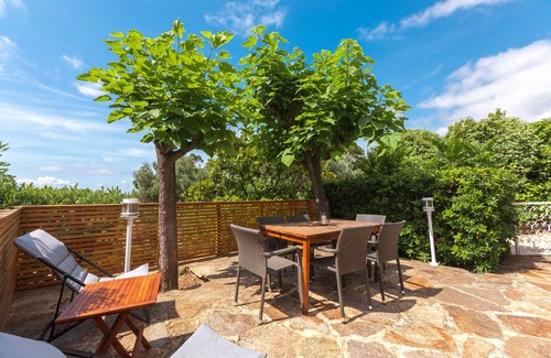 Discover our comfortable villas and apartments for rent on the waterfront with a 180-degree view of the Golden Islands, access to our unique private beach is like this. All our villas are air conditioned, Wi fi access, huge garden, private parking. For sports lovers a few meters away, several activities, water skiing, sailing school, jet ski and Flyboard rental.