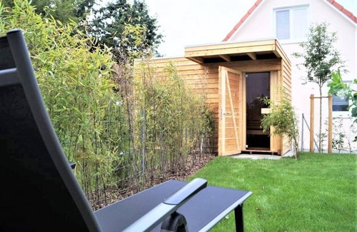 The Sandkorn Ferienhaus offers a cozy retreat for up to four guests, featuring a fully equipped kitchen, sauna, and a garden. A maximum of one dog is allowed for a fee. Key handover and arrival instructions will be provided upon booking.