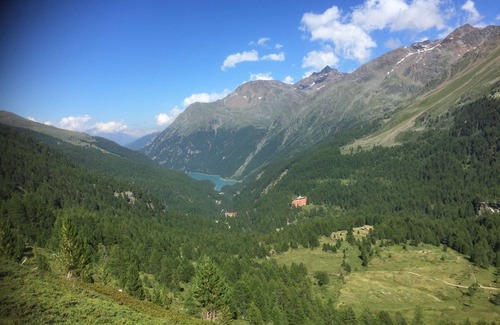 The holiday house with holiday apartments is located in a scenic and absolutely quiet area, in the middle of the national park Stilfserjoch with a wonderful panorama view of the surrounding mountains with waterfall.