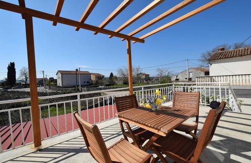 Nice furnished apartment Stela is situated on 1ˢᵗ floor in a family house in a small rural village of Nenadići on island Krk. The nearest beach is distanced about 3000 meters. You can enjoy the peaceful holidays surrounded by nature and greenery. The apartment consists of 2 bedrooms, a living room with a kitchen and dining room, and a bathroom with a shower. TV sat and air conditioning are at your disposal. Pets are not allowed on this property.