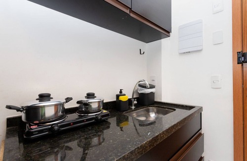 O Apartamento conta uma cama de casal, 2 sofá camas de casal, cooktop, panelas, geladeira, microondas, mesa, roupa de cama/banho, shampoo e sabonete liquido. O prédio conta com lazer completo: Piscina, jacuzzi, solarium, quadra esportiva, espaço coworking com wifi, academia, brinquedoteca e sala de jogos. Obs: não conseguimos garantir o uso das áreas de lazer do prédio pois há manutenções imprevisíveis.
