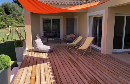 Beautiful architect-designed villa, air-conditioned (heated floor refreshing in the height of summer you can go down to 21 ° C in the house with outside temperatures of 40 ° C. Ground floor of 180m² on an enclosed plot of 1100m², 3 bedrooms and 2 bathrooms, 2 WCs, WIFI, and various games for children (slide, trampoline ...)