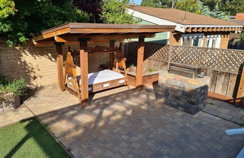 This tastefully and uniquely decorated historical architectural gem in charming Alameda island can host up to 14 people. This spacious 2700+ sqft single family house has 6 bedrooms and 4 bathrooms with a spa, private theater with surround sound, IG fireplace, green reading room, antique swing daybed, kids playroom, foosball, golf putting, deck, backyard, grill and office!
