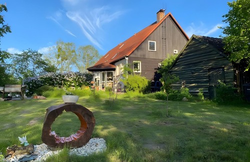 Set in pure nature, this guest house offers access to a shared kitchen and an outdoor area with a natural garden, a barbecue, and an outdoor shower. Local wildlife frequently visits, offering a true countryside experience.