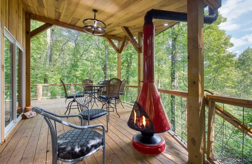 This colorful retreat offers a playful design, airy outdoor spaces, and an ultimate sense of woodsy seclusion. Welcome to Artist’s Palette, a 1BR escape nestled among the trees and hills outside Asheville. With comfortable living areas, plenty of room to enjoy the fresh air, and a charming natural appeal, this one-of-a-kind retreat is ready to immerse you in the beauty of nature.