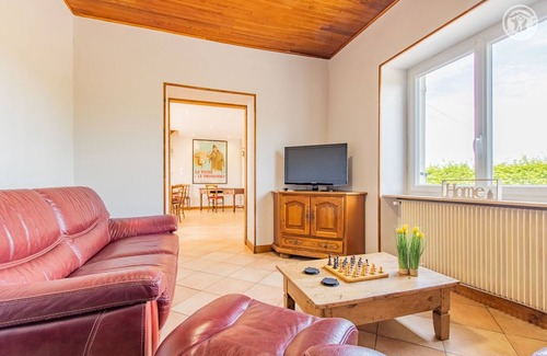Karine & Rémy welcome you to a carefully restored country house from the beginning of the 20th century, located in the heart of the Creusotine countryside, not far from the town center of Le Creusot & all the services & amenities (including a supermarket located just 4 km from the gîte), on an intimate family agricultural property nestled at the end of a small dead-end road (without any particular permanent activities, housing a simple "annex" of their son's farm located further away / stables & shed). Lovely surrounding rural setting, nestled in the "middle of the meadows", in the hollow of a vast bucolic open and undulating plateau of fields & meadows dotted with rivers & small forests, with no close neighbors except the peaceful Aubrac cows parked on site in season . Very comfortable cottage. Ultra spacious. Vast living room. Warm country character with contemporary accents. Very complete quality equipment. Large panoramic balcony-terrace enjoying a beautiful open view of the gentle surrounding countryside. Pleasant lawned garden nestled on the immediate edge of pastures, perfect "play area" secure for children, with a beautiful shaded terrace under canisse and various children's games and leisure equipment (swing, seesaw "tap- ass", volleyball net & badminton). Composition: Detached house on 2 levels adjoining family agricultural outbuildings (stables & shed). Wireless. Oil fired central heating. Air conditioning on the 1st floor. Ground floor: kitchen, living room (well-separated TV relaxation area in "alcove"), one bedroom (double bed 160x200cm), separate WC, laundry room. 1st floor: 3 bedrooms (2 single beds 90x200cm / double bed 160x200cm + convertible 1 p. 120x190cm as an extra / 2 single beds 90x200cm), bathroom (shower), separate WC. Balcony-terrace + terrace (under canisse) + garden + bike room + private parking. Supermarket 1km. All amenities 9 km. Creusot TGV station 9 km.