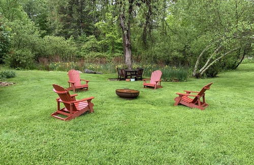 Recently added is a great wood-burning firepit and Adirondack chairs out by our pond. Perfect place to spend a cool evening around the fire.