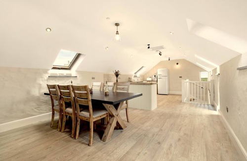 The ground floor features a charming master bedroom with a luxurious Super King size bed and an en suite for added comfort, a cosy King Size bed double room, and a fun-filled bunk room, along with another well-appointed bathroom. Step outside to discover a private garden, complete with a bubbling hot tub that seats six, perfect for unwinding under the starlit sky, as well as a firepit for cosy gatherings and barbecues.