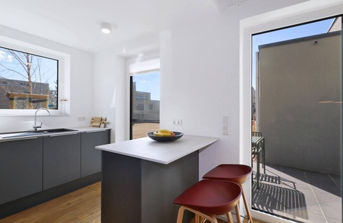 Welcome to your holiday home, which offers you as a family with children or as a small group of friends a cosy, homely ambience with Scandinavian design furnishings. Two terraces for sitting and eating in the sun, the bio-fireplace and your own sauna leave nothing to be desired. The open-plan kitchen invites you to cook and linger. There is an open-plan bedroom on the gallery.