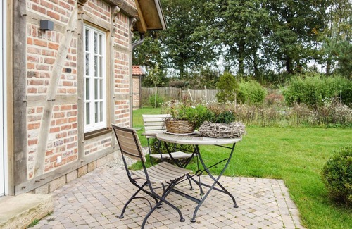 Treat yourself to a break from everyday life and spend your days off in this beautiful and stylish holiday home. The visible half-timbering, the authentic wood-burning stove and the loving furnishings and decoration create a feel-good atmosphere that is second to none. Relax on the two floors and enjoy your holiday to the full. Sit outside with a cup of coffee or have a barbecue on the covered terrace. The garden also offers plenty of space to play and surrounds the charming house.