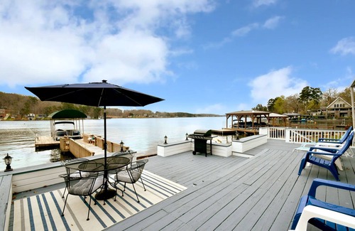 Lakefront home on Badin Lake. Enjoy the views, or jump in the lake! Kayaks and stand up paddle boards included with optional pontoon boat rental add on. Screened in Porch, Large Deck, Bonus Room with many windows and lake views. Garage has been converted to a game room. Sleeping arrangements for up to 17 people.