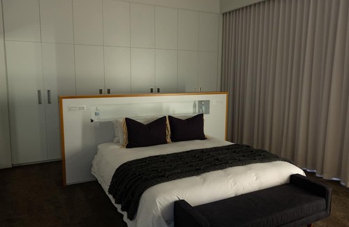 Designed by renowned architect Max Pritchard, this hilltop retreat can sleep up to six guests in 3 King bedrooms. There's an ensuite to the Master Bedroom, and a second full bathroom (including tub and shower, with separate toilet) that Bedroom 2 & 3 share. If you love cooking, you get to enjoy a full chef's kitchen with all cooking requirements such as pots and pans provided, as well as separate media room, and sunken lounge overlooking unmatched views of the Barossa Ranges. Enjoy a luxury experience unique to the Barossa Valley region.