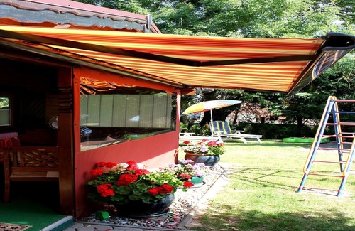 The holiday home is situated on the same property as the house of the homeowner