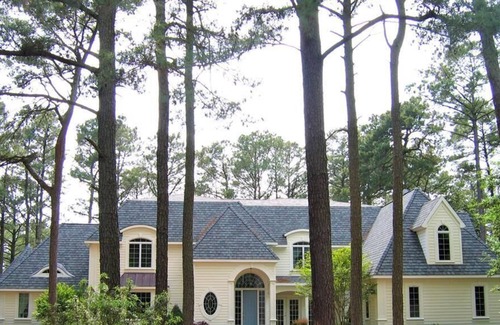 Nestled among tall pines, Bayview Point is a contemporary French Provincial with more than the comforts of home. Large enough for your family and a few friends too! From the fabulous great room with it's soaring ceiling and walls of glass to the impressive gourmet kitchen with granite counter tops and all the tools available to create your favorite dishes. The first floor bedroom suite is a private oasis featuring a king bed, private bath, and comfortable sitting area to read the latest best seller. Let the kids enjoy their own space right off the great room with enough seating for 8 and large flat screen TV. There are 4 bedrooms on the second level. The second king bedroom offers an adjoining room with a trundle daybed and its own mini kitchen. Make a pot of your favorite coffee and walk onto the covered balcony overlooking the bay. The 3 additional bedrooms and 2 full bathrooms complete the accommodations. The house also offers access to the Bay Ridge community pool.