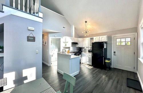 This unit has a private entrance, parking and separate outdoor space for grilling, dining, and hanging around the fire pit. It's fully equipped with everything you need from kitchen essentials to soaps, in-unit laundry, board games, beach towels & chairs, and coffee.