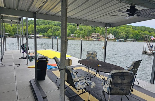 Your Lake of the Ozarks adventure begins at this 4-bedroom 2 bathroom cabin. Enjoy the cool AC while utilizing the high speed internet or hang out around the fire pit for some smores. The property also boasts a sandy beach and a huge dock with a refridgerator and toys for guest use. If the house doesn't have enough space for you there is also a camper spot across the road with water and electric hookup. Last but not least there will be a hottub available for guest use starting March 2025. This property has everything you need and much more for a comfortable getaway.
