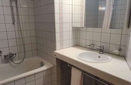 3-room apartment 64 m2 on 2nd floor, east facing position. Living/dining room with cable TV (flat screen). 2 double bedrooms. Kitchen (oven, dishwasher, 4 ceramic glass hob hotplates, toaster, kettle, electric coffee machine). Bath/WC, sep. WC. Terrace, east facing position. Terrace furniture. View of the mountains. Facilities: hair dryer. Internet (WiFi, free). Please note: non-smokers only. Maximum 1 pet/ dog allowed. A fondue set (meat or cheese) and a raclette oven can be borrowed from reception.