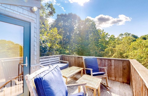 This magical property is the perfect east coast getaway for you and your loved ones to escape the everyday hustle and bustle. On the gorgeous island of Martha's Vineyard, this home boasts a secluded area covered in green trees and a stunning ocean view from the rooftop balcony. Spend all day on the beach by participating in fun rentals and excursions like parasailing, paddleboarding, deep-sea fishing, surfing, and every other waterfront activity imaginable. Stroll downtown to discover delightful eateries, boutique shops, and arts to make your stay memorable.