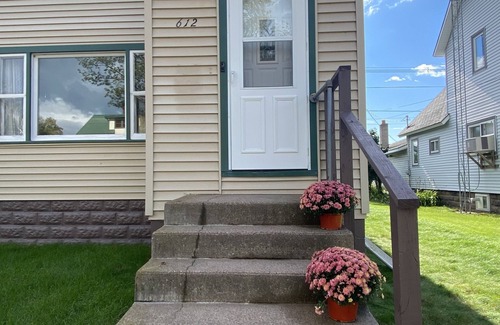 Tidy, updated 1905 home in the heart of the Village of Ontonagon. At just two blocks from the beach you can hear the waves and see the lake from your front yard. Located steps from local restaurants and quaint shopping, this updated village home has it all. It’s a perfect place to explore the great outdoors without giving up any of the comfy amenities you expect. Lightning fast internet, central air, quality linens, and updated decor make this home the perfect spot to cozy up with the family and make your UP memories. Whether you are rock hunting, driftwood gathering, hiking, on a waterfall tour, boating, or skiing or snowmobiling , this is an awesome, centrally located base. You are 20 minutes from the Porcupine Mountains Wilderness Park and Ski Area, within a half hour of several waterfalls, and less than an hour from two other ski resorts. Sleeps 10 and a couple of pets very comfortably.