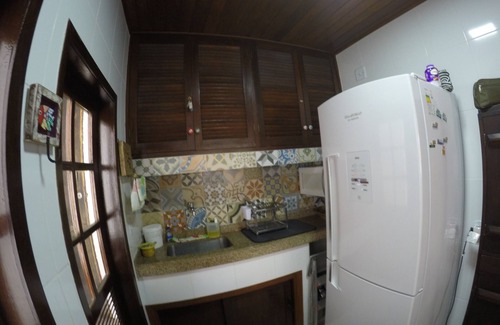 Comfortable home, very airy and beautifully decorated. Located on the first street after the street of Praia dos Anjos. Composed of large living room - with several environments - wooden dining table with 8 chairs, several sofas, hammocks, rocking chairs and others comfortably distributed to watch LCD TV (45