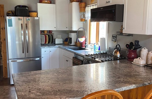 Welcome to are camp loon home away from home in beautiful town of Greenville,maine. Camp offers a gorgeous view of Moosehead Lake watch the sunset set behind little moose,and big moose mountain watch the sea planes lift and land all day or see the kineo boat sail by the camp. Being in a community on birch point we share over 400 feet of water frontage with a 70 foot jetty to fish off or maybe take all the pictures of nature a small beach area for that swim or float around with your float. A dock to hang out on place to put your kayaks or canoe. Camp is a mile from in town with shopping areas nice restaurants on the lake a grocery store take the family for a ice cream maybe sign up for one of those adventures on the lake the town has a family own drug store. Camp loon has a big lawn area to enjoy throwing a football maybe play some corn hole it has a wood fire place with wood to enjoy. The camp has a big drive way it can park 6 cars for family or friends that wants to visit or big enough to park your trail with your atvs on not worrying where to park your trailer plenty of room for that. There’s a back up generator hooked to the camp so you won’t have to worry if the power goes out on a cold windy night.Camp loon has just about 1000 sqf of space main floor has a dinning area, living room, full kitchen, full bathroom, 1 bedroom. Living room has a full couch, two recliners a nice gas fireplace on those cold wet nights when you want to stay inside and have a glass of wine with your friends it’s not for heating the camp but to relax by a fire the camp does have a gas monitor to heat the camp. The living room has a walk out deck that overlooks everyone else to enjoy the sunset or watch the activity on the lake and not having anything blocking your view, deck has a sitting area with a gas fire place for those late evening listening to the loons calling and a pellet grill for your outside grilling and two awnings for those rainy days. The dinning area sits 4 people. The kitchen has a full size refrigerator, gas stove, microwave, coffee pot, and toaster. All the cooking and dining essentials you need and the bar area sits two people. The bedroom has a queen bed it’s own tv. Bathroom has a shower with all the essentials you need. The loft has three beds a full couch plenty of room to play games and a tv with movie for the kids. This camp is a home away from home