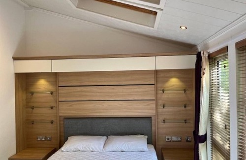 2 bed lodge, sleeps 6. With decking, free Wi-Fi, double glazing & central heating. Platinum-Deluxe rated.
