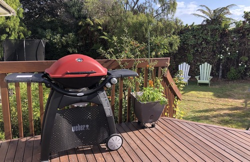 Quiet peaceful retreat in attractive garden setting with large mature native trees. Beautifully furnished and warm double glazed house with all new beds, comfortable leather couches that seat 7+ people (sit back and enjoy the 65" 4K QLED TV and the ultrafast broadband), separate dining room, outdoor table and chairs for six and everything you need for a pleasant stay. No lumpy mattresses or saggy sofas!