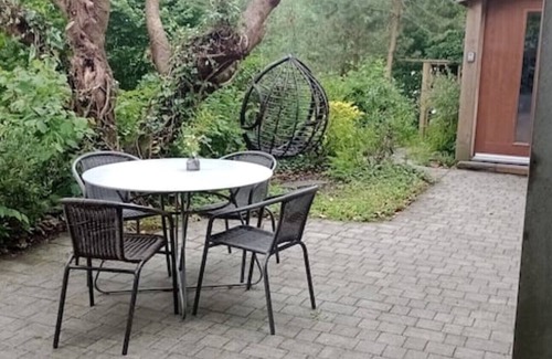 Nice patio with views, lots of local walks through forests, along rivers and canals. Local pubs, restaurants, shops 20-25 mins walk.