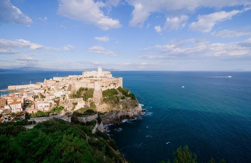 The camping pitches and the various chalets are scattered around the large park in the shade of the pine trees. You can choose from different types of chalets and bungalows at Baia Domizia Camping Village. All types have a lovely terrace with garden furniture and a private parking space. There is air-conditioning available in all types (for a fee). This modern and freshly furnished version with two bedrooms can be booked for 2 persons (IT81030-13), 3 persons (IT81030-14), 4 persons (IT81030-15) or 5 persons (IT81030-16). The campsite offers everything for a perfect holiday. There is plenty of variety here to enjoy everything from relaxation to adventure. There is a miniclub and an entertainment team, sports fields, a gym, a large pool and a large sunbathing area with sea views, catering facilities and a small shopping centre where you can find everything you need for your daily needs and souvenirs. Another highlight is the private beach, which is over 1 km long. Excursions can also be organised wonderfully from here: Discover the beautiful islands of Ponza, Ischia and Capri, or explore Naples and places like Pompeii on the Gulf of Naples. The historic cities and the great works of art of cultural value will inspire you.