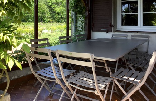 - Depending on your mood, the season or the weather, you'll be able to share your meals simply in the kitchen, in large numbers around the family table (14 place settings), on the terrace under the wisteria or in the shade of the weeping birch outside.
