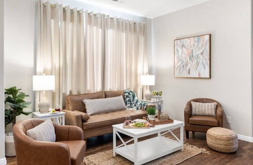 Refreshed, stylish and inviting 3 bdrm condo with comfy beds to sleep 4 adults separately, 6 max. Enjoy our stocked kitchen, smart TVs in all rooms, quiet neighborhood, and location in sunny Mesquite. A golfer's paradise, we are close to the Casablanca and all other courses and casinos. Our deep 2 car garage has room for your toys. The shared year round hot tub and seasonal pool is available for you as is a play/BBQ/picnic area. Responsive hosts assure a great stay. Come and enjoy Mesquite!