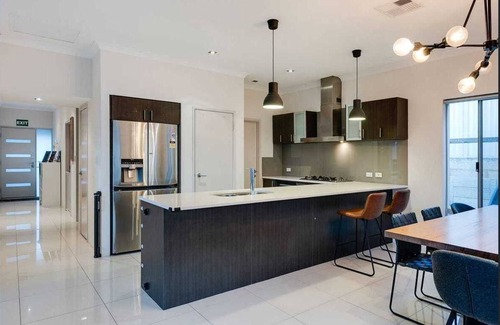 2 large rooms upstairs with bathroom, bathtub and toilet. Massive living area downstairs with kitchen and living area, with laundry and dryer. 10 kms to city and short drive to river and Fremantle. Great location, close to major shopping centre Garden City. Quite location. Washing machine, toaster, kettle and Nespresso coffee machine available. Large oven, microwave, big fridge / freezer. Minimum 2 nights. Linen and towels provided. You will not be disappointed. Plenty of parking.