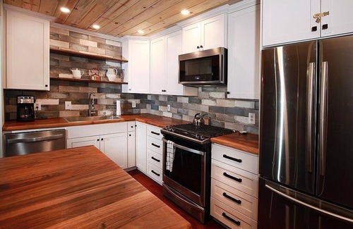 A beautiful, spacious cabin that is fun for the whole family. The Big K Hideaway is a gem that sits in the Northwoods of Greer and backs up to the National Forest. Enjoy your coffee or cocktail while sitting on the large deck and watch the local deer and wildlife. The Big K Hideaway has 3 bedrooms, 3 full bathrooms and a loft that sleeps 6 children. The loft is a fun place for children to sleep and play. There are two fully equipped kitchens. The larger kitchen is great for big family meals. While the second kitchen is perfect for early mornings or families cooking separately. Kitchen features include new appliances, dishwasher, microwave, oven, blender, toaster, and Ninja Foodi (pressure cooker, slow cooker, air fryer). Enjoy time outside while using the horse shoe pit on the upper lawn. Propane BBQ sits on deck so you can cook and spend time with one another. If it's getting a little chilly that's okay, because you can curl up next to your choice of two wood burning stoves inside. If lighting the fire is not your thing, this cabin is equipped with a forced air heater. Enjoy the provided selection of books and games. Mud room is equipped with washer/dryer and bathroom for easy clean up after a long day exploring the beautiful White Mountains and the historic town of Greer. If you are looking for a place to stay while you are hitting the slopes at Sunrise, look no further this cabin is minutes away! This is a quiet place for family and friends to enjoy and escape the hustle and bustle of fast city life. We hope you enjoy your stay…at the Big K Hideaway!