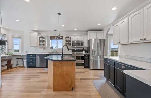 Gather your crew at our expansive Black Hills hideaway — six bedrooms, three baths, and a layout built for togetherness. Two king suites, three plush queen rooms, and two full-over-full bunks make bedtime easy, while a fully stocked kitchen and farmhouse dining table set the stage for shared meals.