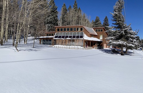 Plan your mountain getaway for the whole family at the Blue Spruce Lodge. This 3,000 square foot home has so much to offer, from all the natural light let in from the sunroom and skylights, to multiple spacious bedrooms. This gem is located right in the Village of Cloudcroft. Blue Spruce Lodge is located just a couple minutes from Burro Street, which has great locally owned restaurants and shops.