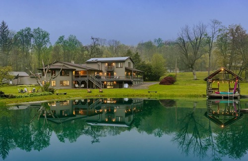 BLUE WATER LODGE ~ Sleeps 30 ~ Stunning Pond w/ Fish | Cabin in Allenwood
