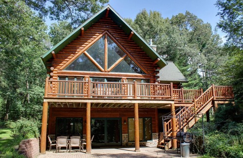 While serenity surrounds you, excitement is just five miles away in the vibrant Wisconsin Dells. With attractions, dining, and entertainment close by, this log home strikes the perfect balance between peaceful seclusion and easy access to adventures.
