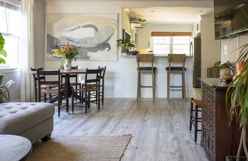 Relax with the whole family at our peaceful, bright, and cheerful bohemian cottage nestled in the heart of Riverland Terrace. We provide everything you need for a home-away-from-home retreat! Treat yourself to the provided veggies and herbs from our organic front yard garden, sleep easy in cozy bedrooms complete with organic linens and mattresses, enjoy the screened-in porch or lounge in the back yard patio and fire pit.