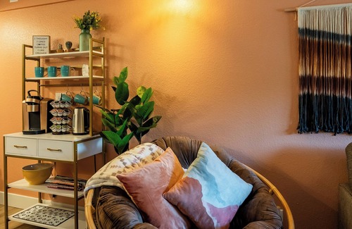 Experience comfort and luxury in this centrally located, exclusive pet-friendly haven that comfortably accommodates up to 4 guests. With a lavish king bedroom and a plush queen sleeper sofa adorned in designer linens, relaxation is guaranteed.
