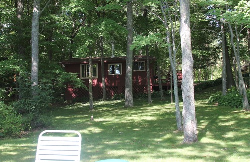 The cabin sits in deep shade with a beautiful view of secluded Miller Lake. It is located 5 miles NW of Garrison MN and sleeps 4-5 comfortably. There are 2 bedrooms with queen size beds and dressers for clothing storage. Open floor plan features living room (queen sofa sleeper) and kitchen with dishes/glassware, pots & pans, utensils, toaster, microwave, coffeemaker etc. Gas & charcoal grill provided. 1 Bathroom (REMODELED/enlarged 2020-pics do not do justice) w/ cool round shower--no tub. A wood burning stove is the only source of heat in the cabin, wood is provided.