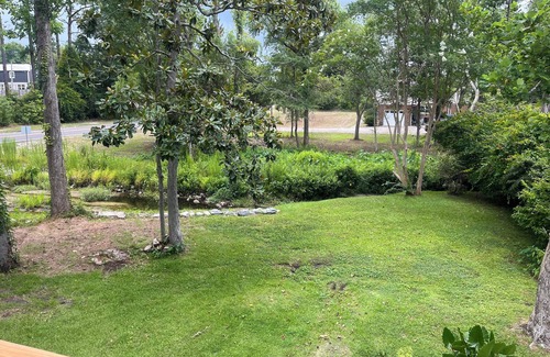 Welcome to “Tidal Creeks Cottage”. Brand new custom light filled 1 BR, 1 BA high-end 500 sf cottage built along Wilmington's Clear Run Branch Creek and nestled within beautiful mature trees. Located on Wilmington's Cross City Trail this cottage is ideal for outdoor enthusiasts. The bike ride to Wrightsville Beach Drawbridge is just 3 miles. UNCW is 1/2 mile. 1 mile to Starbucks along the trail and 2.5 miles to Wilmington's best shopping: Mayfaire Town Center. Fully equipped kitchen with marble countertops. Hardwood Floors. King Casper Cooling mattress. Side private porch off bedroom facing the creek. Front porch with rocking chairs. This cottage is located in a neighborhood where the property owner lives on the same property in a separate home. The owners are happy to offer local recommendations or assistance if needed. This property is ideal for singles or couples who wish to stay in a very convenient spot to explore Wilmington or Wrightsville Beach, NC.