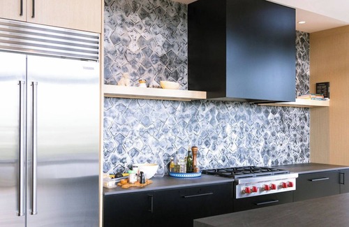 The chef’s kitchen is a highlight for those who love to cook or entertain, featuring top-of-the-line appliances, a large island with bar seating, and all the tools you need to prepare everything from hearty breakfasts to gourmet dinners. The kitchen comes thoughtfully stocked with cooking basics—spices, oils, and essentials—so you can settle in and start enjoying your stay without a trip to the store. A stylish bar area is perfect for winding down in the evenings, and there’s even a Peloton bike for keeping up with workouts during your stay.
