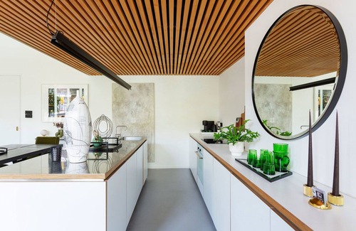Coffee table nods to Tom Ford and Annie Leibovitz underscore this property’s unerring passion for arresting visuals, while daring experiments in design continue in the kitchen. Snugly nestled beneath the mezzanine level, it’s an unabashed key change in styles offering a flawless exhibition of Brazilian mid-century design in action. A suave home of unadulterated style (the owner has designed and made some of the furniture in this home), we can imagine sexy Bossa Nova melodies playing whilst caipirinhas are served on ice...