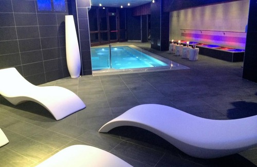 Relax by the indoor pool or sip a drink by the swimming pool of this vacation home.