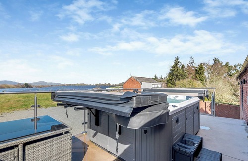 Bedroom 3: Double (4ft 6in) Bed, 2 x Single (3ft) Beds Ensuite: Cubicle Shower, Heated Towel Rail, Toilet. Gas central heating, electricity by solar power, bed linen, towels and Wi-Fi included. Travel cot and highchair. Welcome pack. Grounds with terrace and garden furniture. Balcony with outdoor furniture. Hot tub for 8 (private). Electric car charging point. Private parking for 3 cars. No smoking.. With views of the Shropshire Hills Area of Outstanding Natural Beauty, Breidden View is a superb spot whilst you explore this wonderful part of Shropshire, and is within easy reach of Shrewsbury. You are greeted to the property by off-road parking, down a farm track, before you climb up the stairs to the balcony which has furniture so guests can enjoy a spot of al fresco dining as they admire the sweeping countryside views.