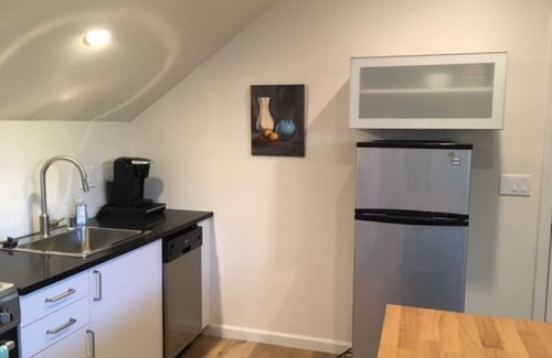 Bed linens and towels, including a starter supply of hand/bath soaps and toilet tissue are provided in the guest apartment. A satellite TV and Internet access is also available, and the unit contains its own portable washing machine and dryer for guest use.