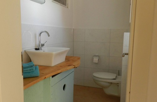 The spacious studio apartment with a view of the garden, quiet and centrally located, is suitable for 2-3 people, an extra bed is possible. In the front room is the living room with table, chairs, two couches and flat screen TV, in the back a large wooden bed, a wardrobe, a small table and armchair. A little apart is a shower and a mini kitchen (without dishwasher), with a refrigerator, two hot plates, kettle, toaster and coffee machine. A private seat in the green as well as grill and bicycles belong to the apartment. Information and maps are available for you.
